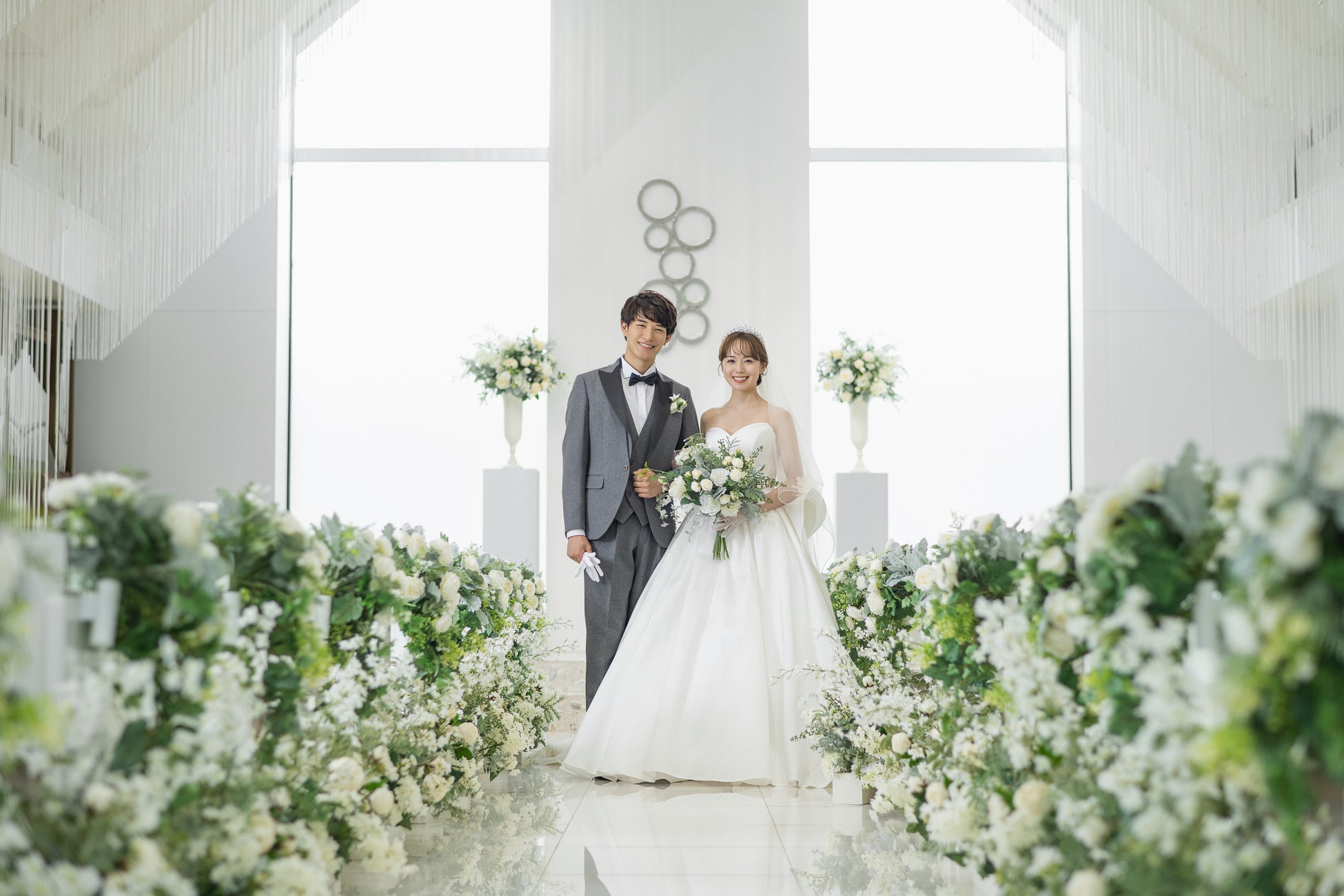 鳥羽国際ホテルでは、オーシャンビューの絶景が魅力のテラス挙式をはじめ、ガーデンセレモニーや、真珠をイメージしたパールホワイトのチャペルの挙式、二見興玉神社での神前式など、おふたりにあった挙式をお選びいただけます。