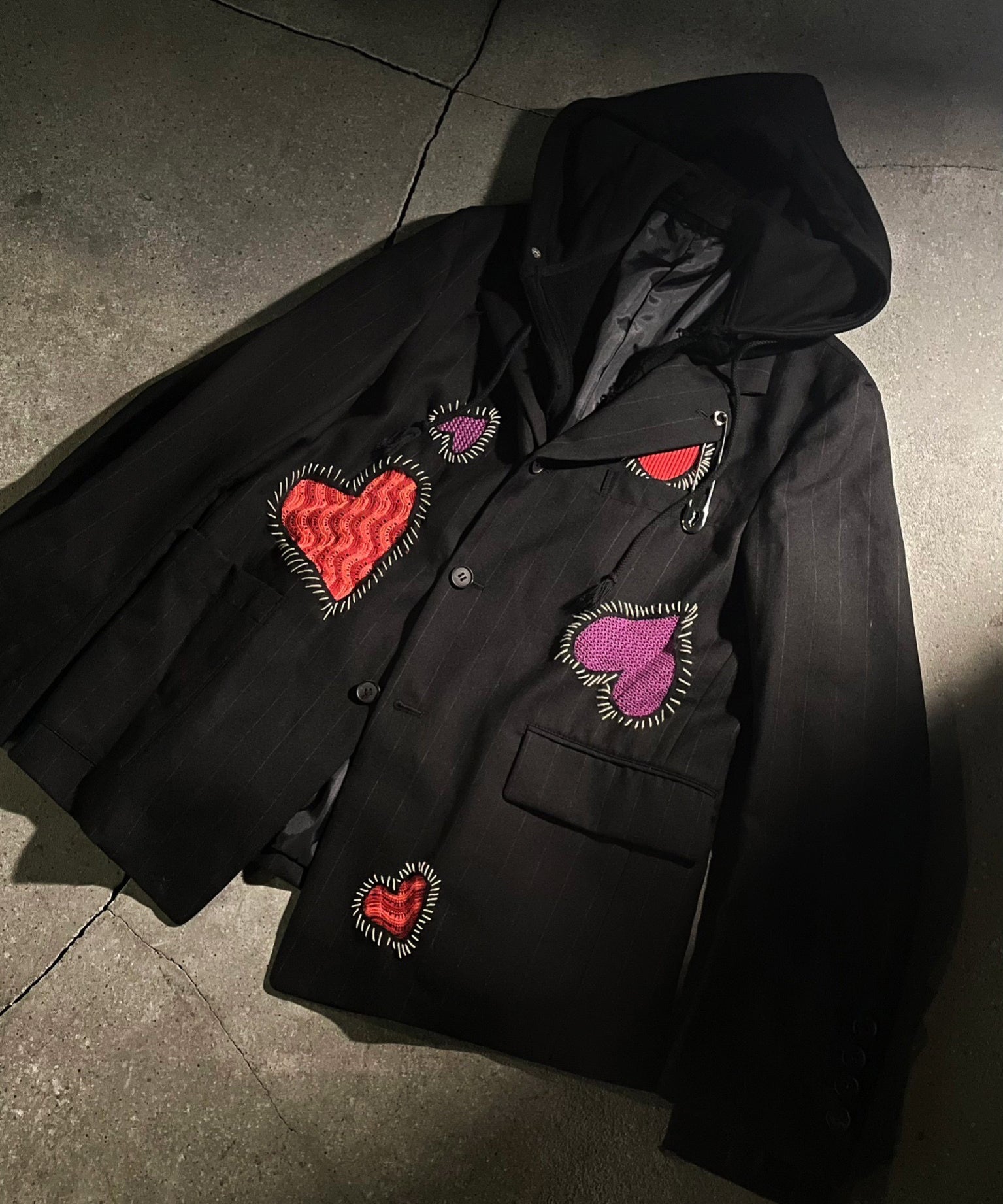 ・DIET BUTCHER × sonatine 「Patchwork Docking pinstripe jacket」