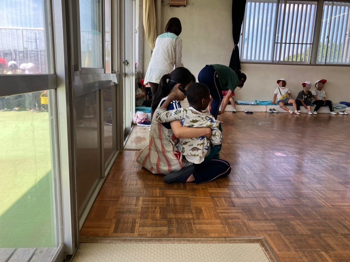 ストレス反応が出て、耳を塞ぐ場面では、スキンシップを取って、それを解消していた。