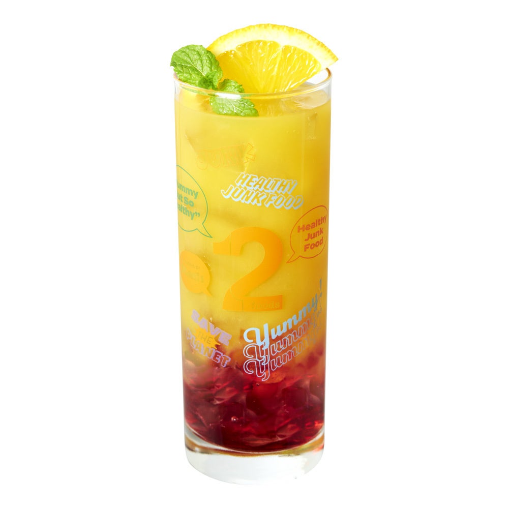 ドライカシスの芳醇な香りと味わいが口いっぱいに広がり、程よい酸味のオレンジジュースにぴったり。つるんとのど越しの良いカシスゼリーの食感が楽しい、ノンアルコールドリンクです。
