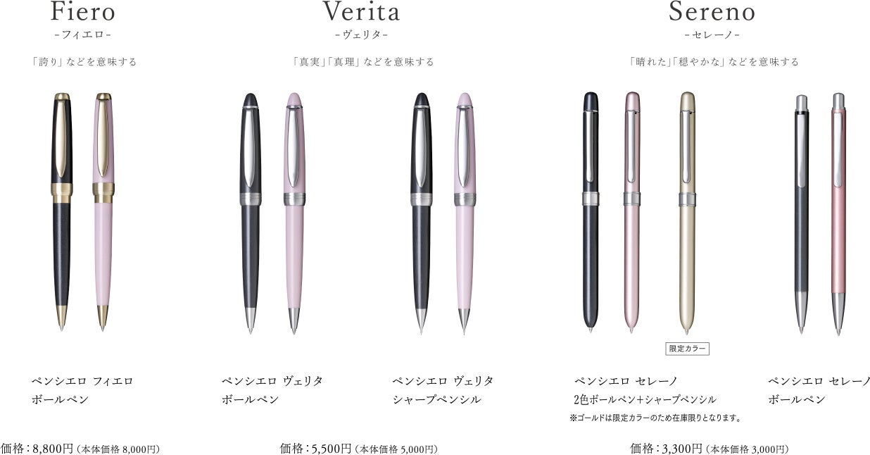 Pensiero 贈り物にぴったりな筆記具シリーズ ラインアップ