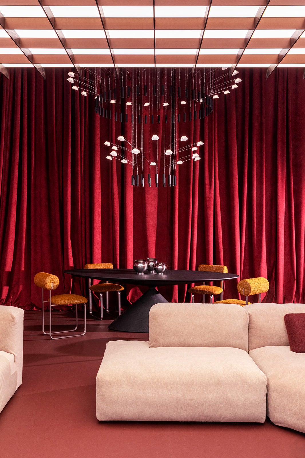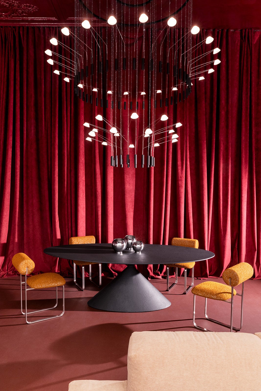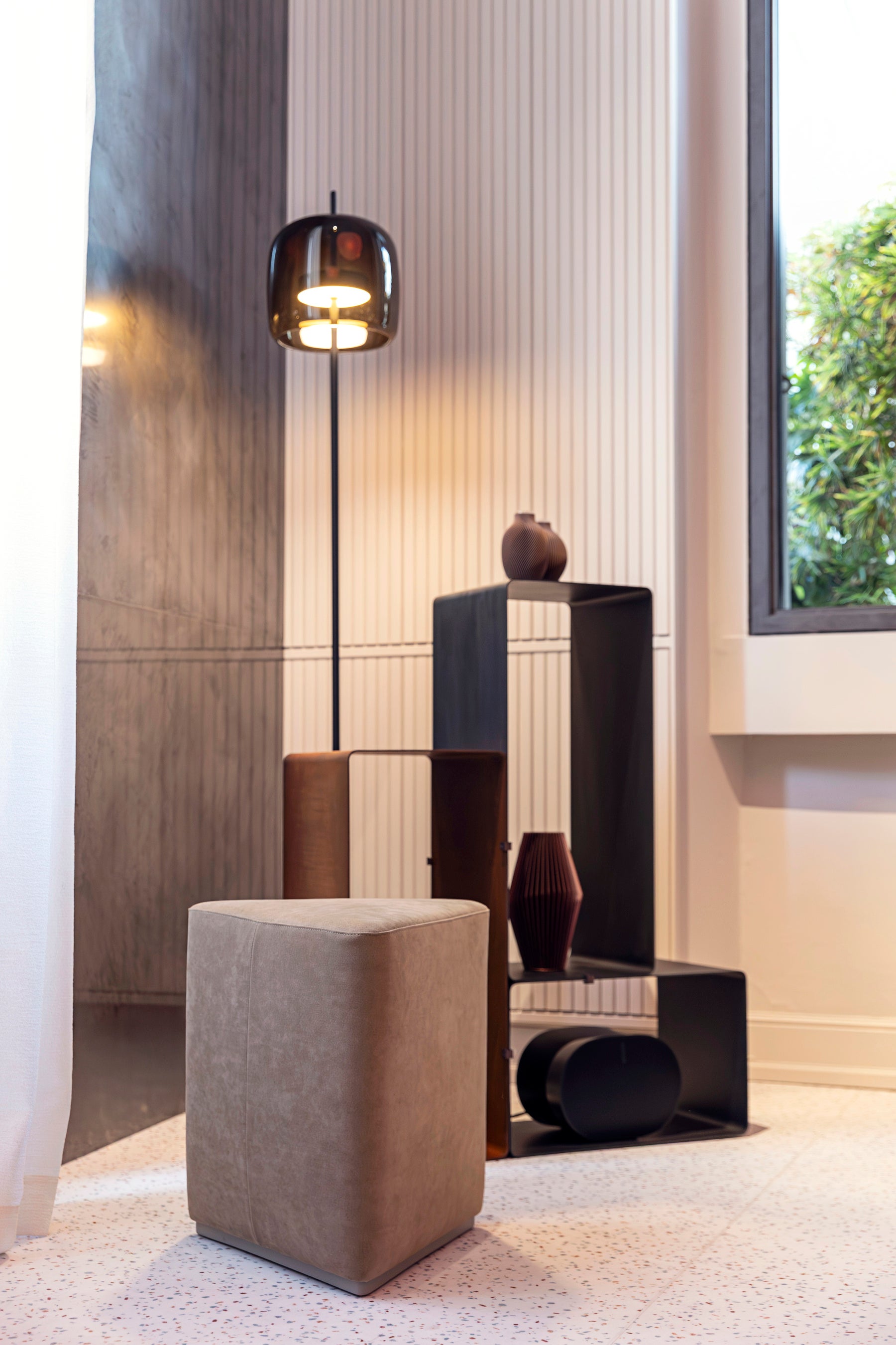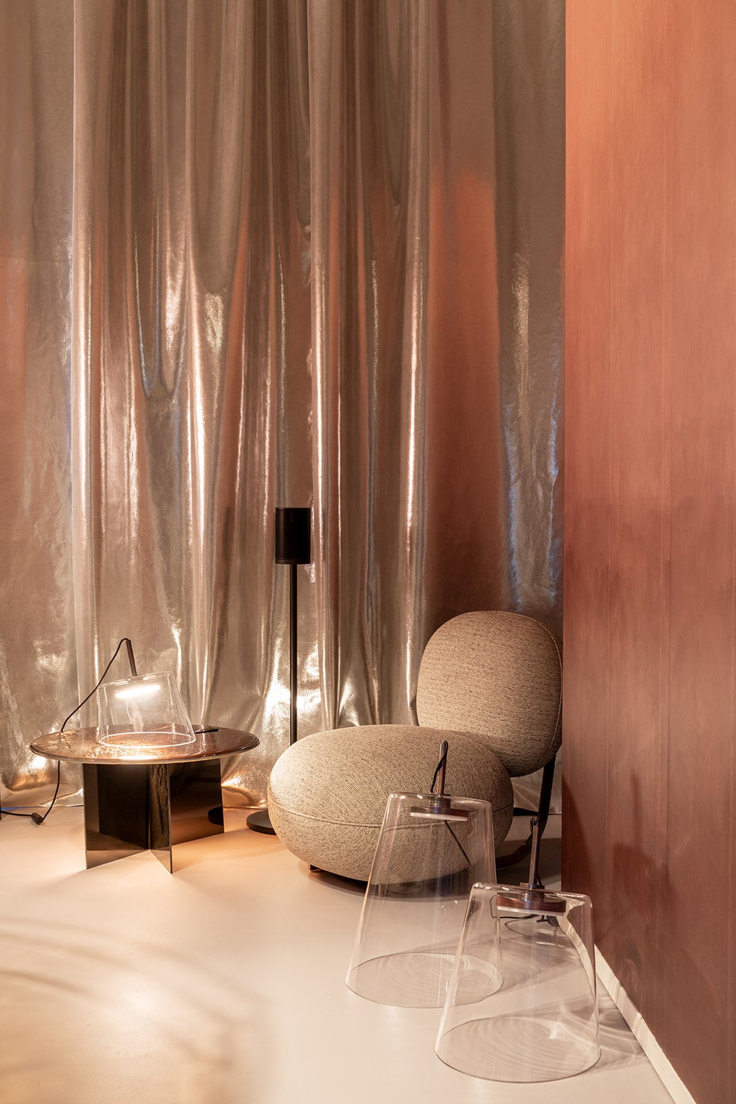 ミラノの気鋭の建築・デザインスタジオStudiopepeがキュレーションする本インスタレーションは「火」をインスピレーションに、インテリアを「生きたツール」として再解釈しています。