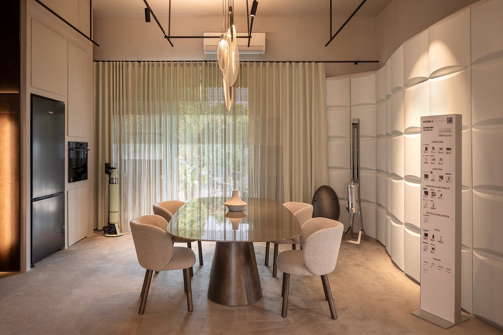 本インスタレーションでは、空間やマテリアル、人々の関係性を読み解くためのレンズとして「FÒCO(火)」という根源的な自然の要素をデザインに昇華しています 。一方、タイトル後半の「Living notes」が表現するのは、空間に散りばめられたデザインの軌跡。インテリアを単なる鑑賞用の装飾ではなく、実際に人々が足を踏み入れ、それぞれの感性で体験・解釈するための「生きたツール」としてとらえています。