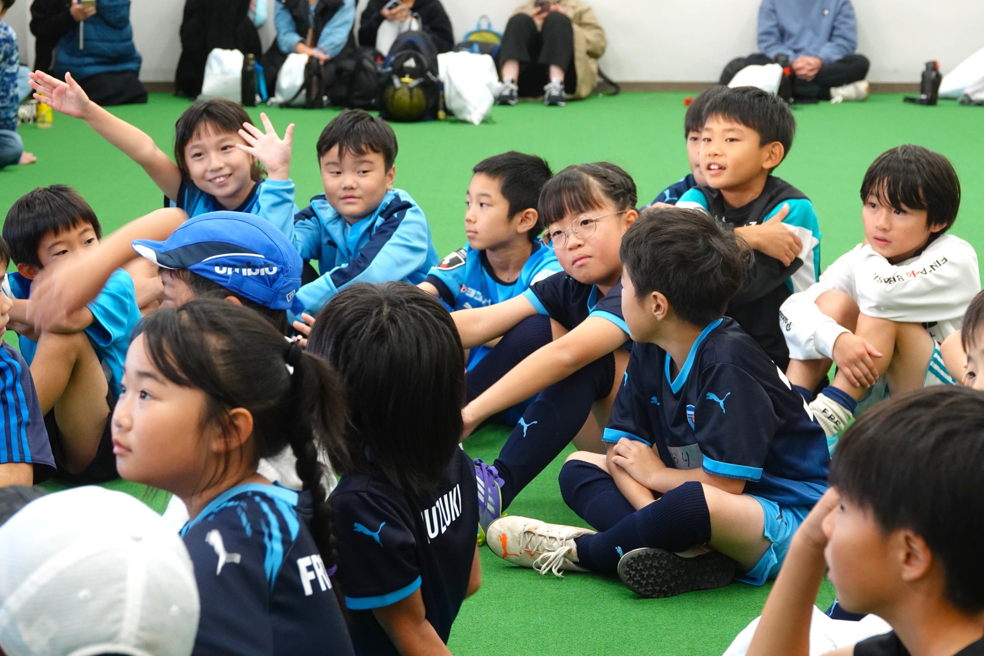 元日本代表の太田宏介氏と、横浜FC C.R.O(クラブリレーションズオフィサー)内田智也も参加し、横浜FCのサッカー教室がスタートしました。