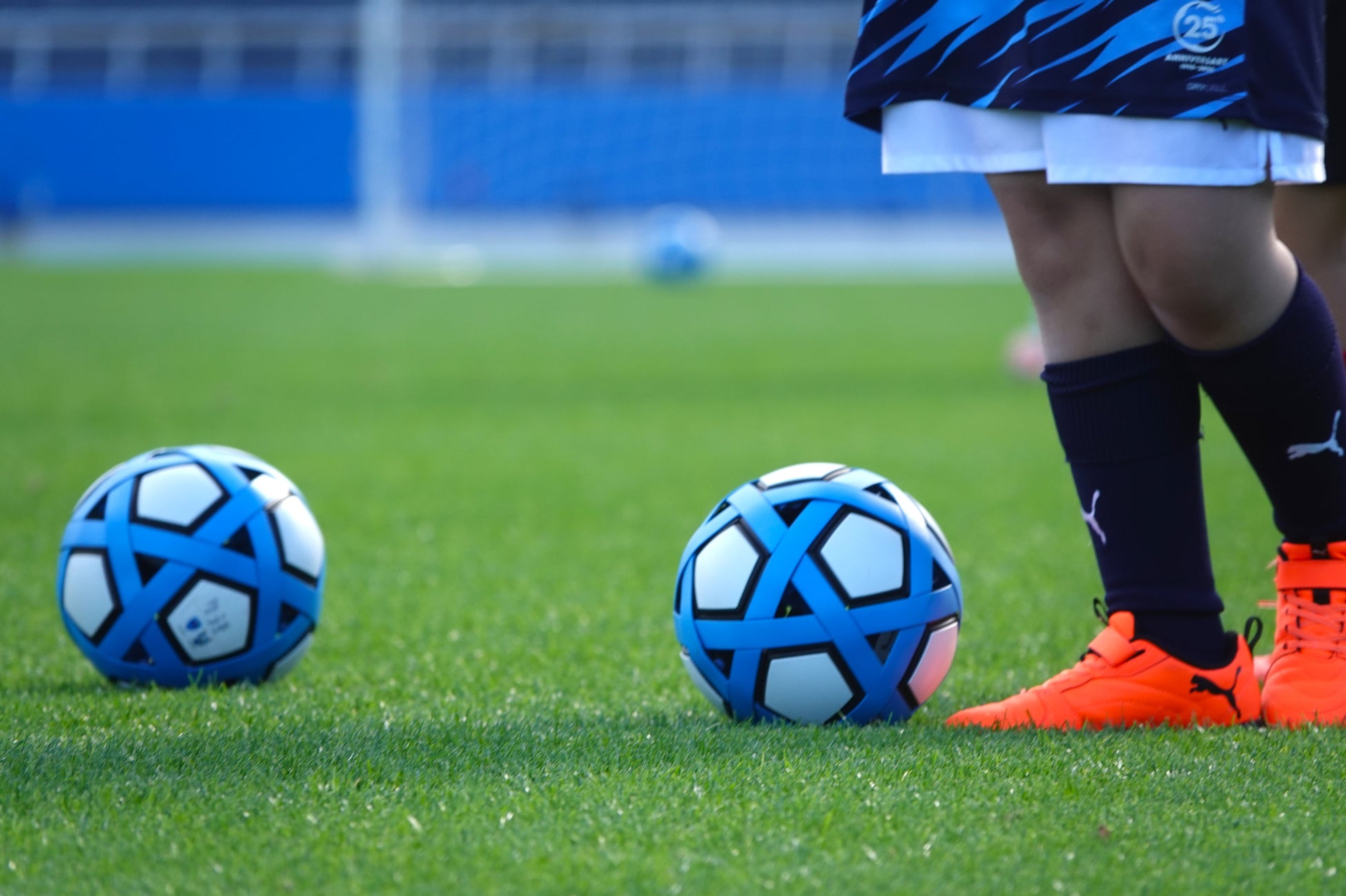 時間をかけて自分で作り上げたサッカーボールを持って、いよいよJリーグの試合も行われている三ツ沢のピッチへ。