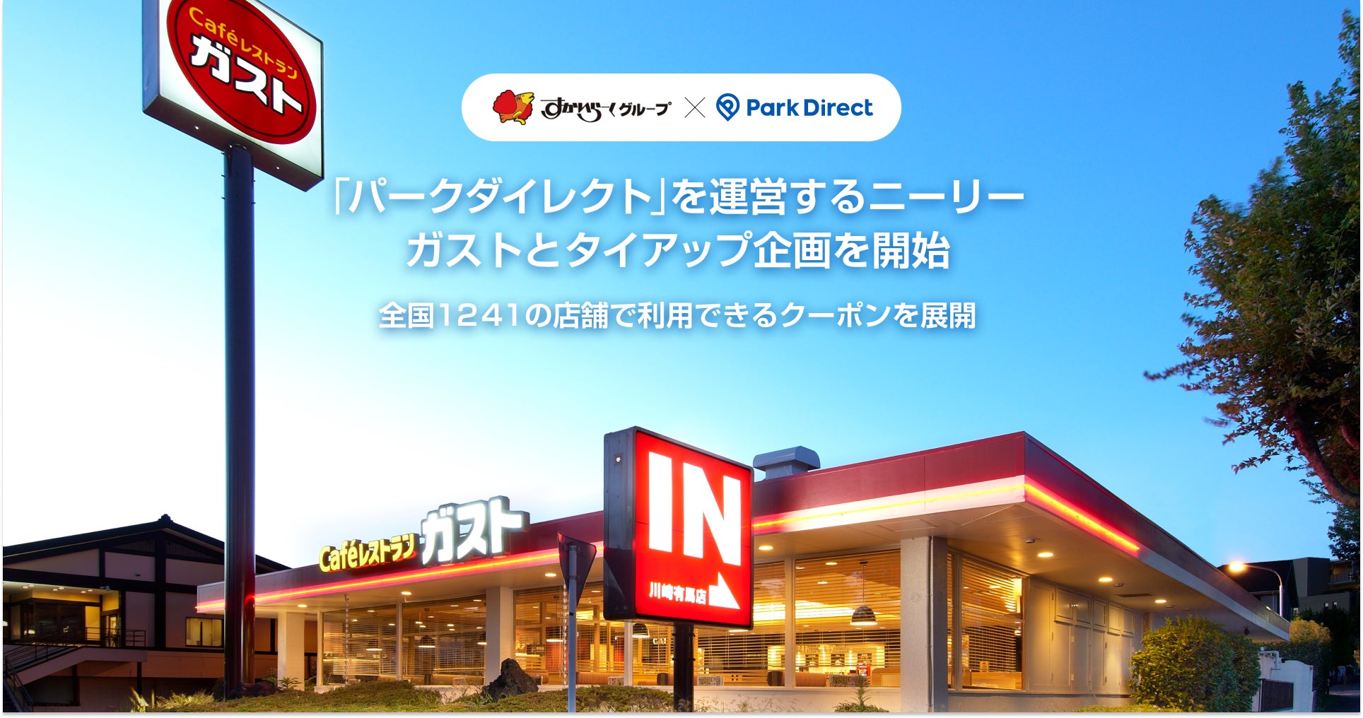 「Park Direct(パークダイレクト)」を運営するニーリー、ガストとタイアップ企画を開始