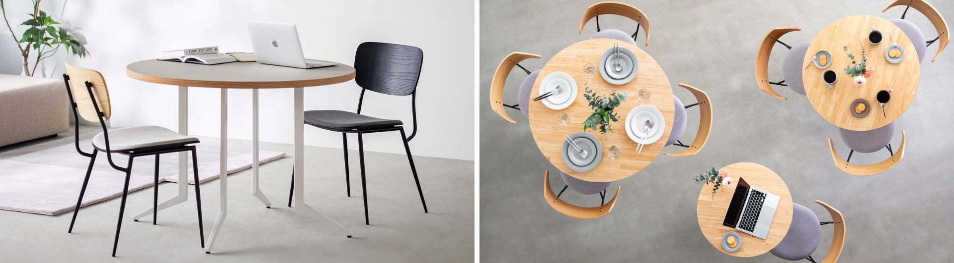SNSでも人気の「THE CAFE TABLE / ラウンド」シリーズ。角の無いラウンド型は、日本の狭小住宅においても生活導線を確保しやすいことから、様々な用途でご愛用いただいているシリーズです。