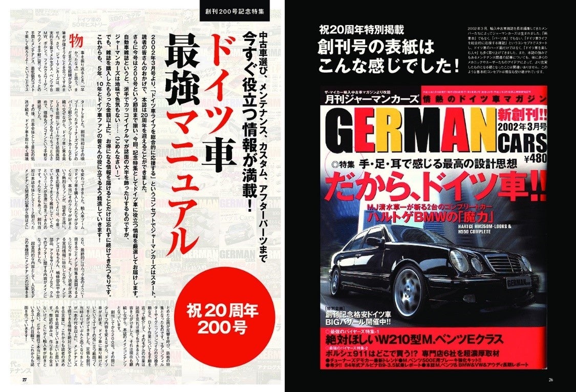 日本で唯一、ドイツ車だけにこだわり抜いた専門誌として刊行を続けてきた、我らが『ジャーマンカーズ』がついに20周年×200号に到達!