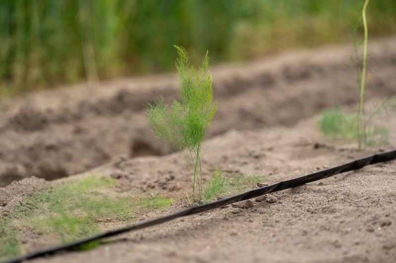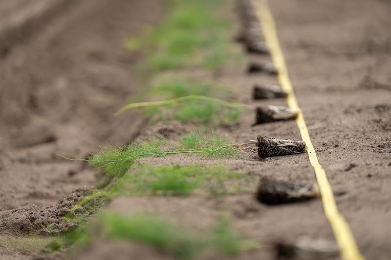 本事業における現地栽培実証は2025年3月までの約1年間を予定しています。4月22日に圃場整備・アスパラガス苗の定植が完了し、本格的に栽培を開始しました。