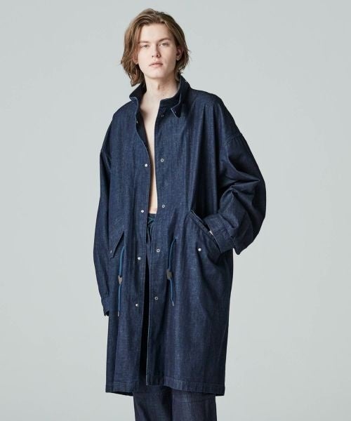 アメリカ海軍のM-65フィッシュテール・パーカーをデザインソースにデニムで表現し、現代的に着やすくした1着。 marka(マーカ)の定番アイテムである"SHIRT MODS"をベースに、ロング丈にアレンジ。