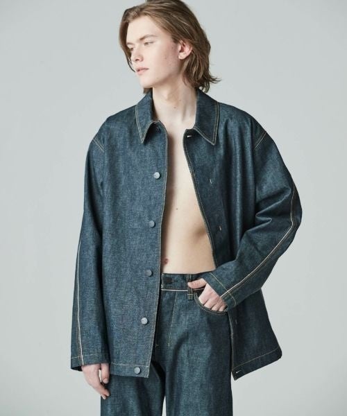 JAPAN DENIMでも特に人気の高い品番が待望の再入荷。デニムジャケットの定番3rdタイプのモデルをべースに、シルエットはドロップショルダー、バックにはデニムのプリーツをあしらう大胆なデザインを施したジャケットです。