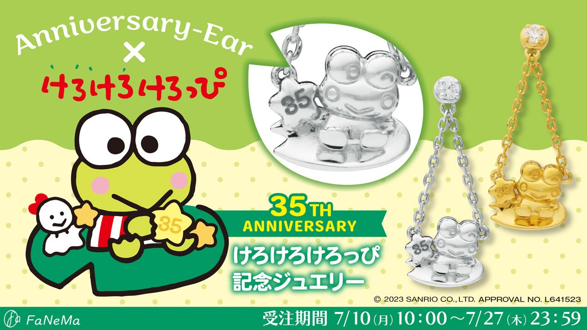 FaNeMaのジュエリーブランド『Anniversary-Ear』より、「けろけろけろっぴ」35周年をお祝いするオリジナルアクセサリーが登場です。