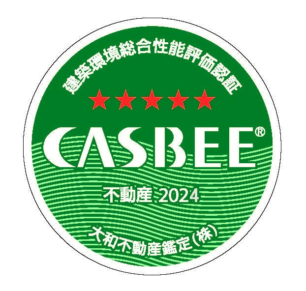 「CASBEE評価認証制度」は建築物の環境に対するさまざまな側面を客観的に評価し、環境負荷の少ない持続可能な建築物の普及を促進することを目的とした制度です。「CASBEE-不動産評価認証」は既存の竣工後1年以上の建築物を対象に「エネルギー/温室効果ガス」、「水」、「資源利用/安全」、「生物多様性/敷地」、「屋内環境」の5つを評価してランク付けされます。