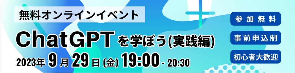 ChatGPTを実践学習する「無料オンラインイベント」も9月に開催!