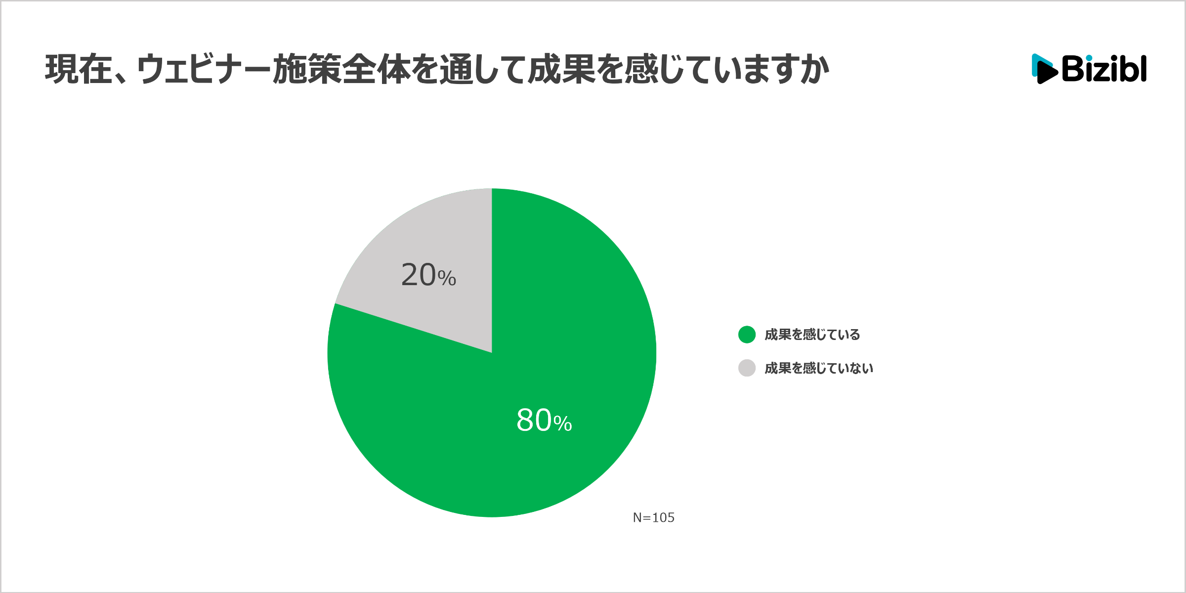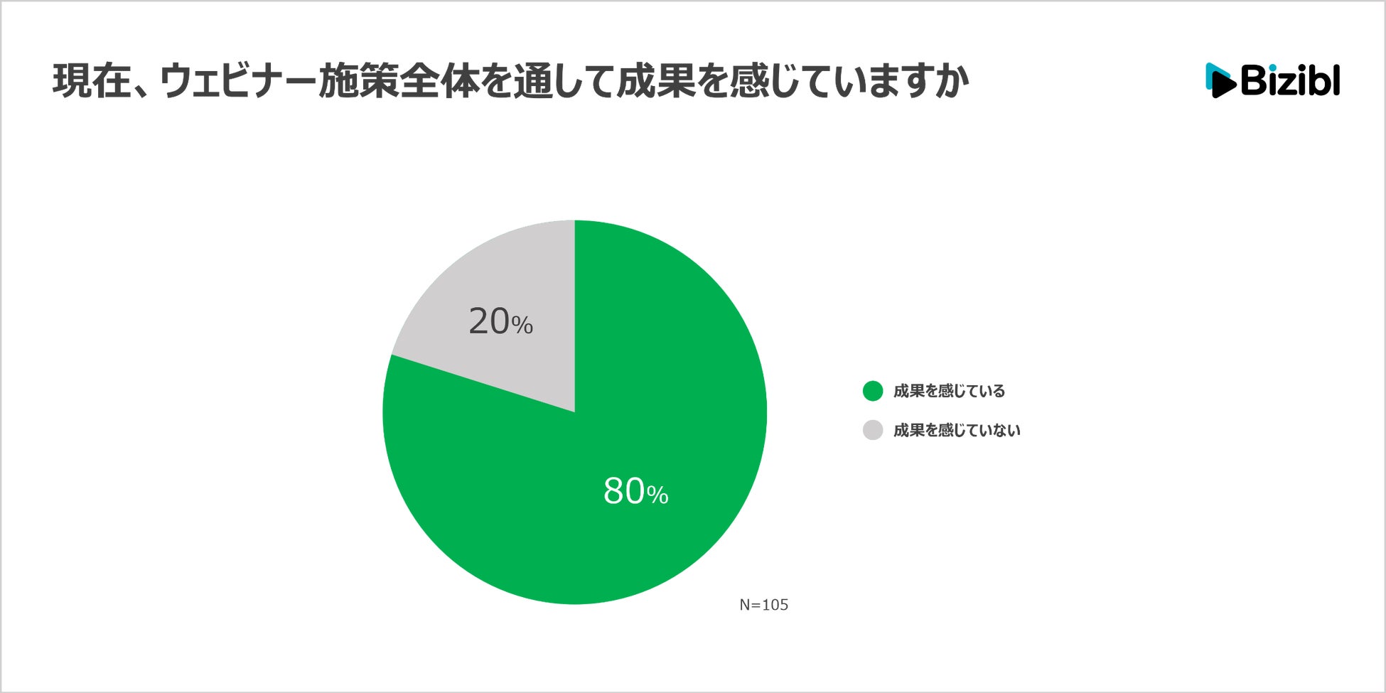 1)「ウェビナー施策に成果を感じているか?」という質問に対し、全体結果は「感じている」が80%、「感じていない」が20%という結果となりました。