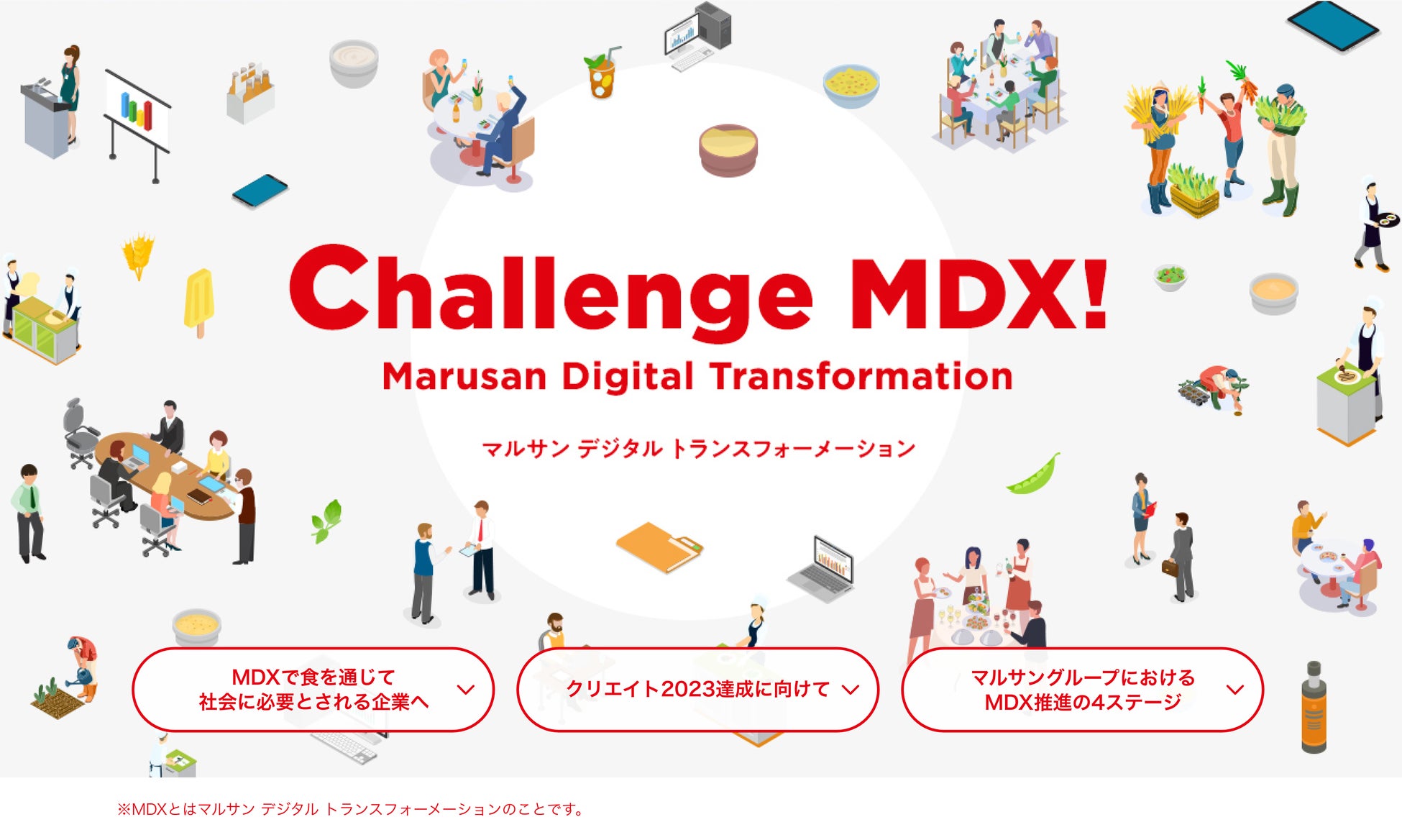 MDX(マルサン デジタル トランスフォーメーション)はデジタルでビジネスを変革させるものとし、当社グループは食を