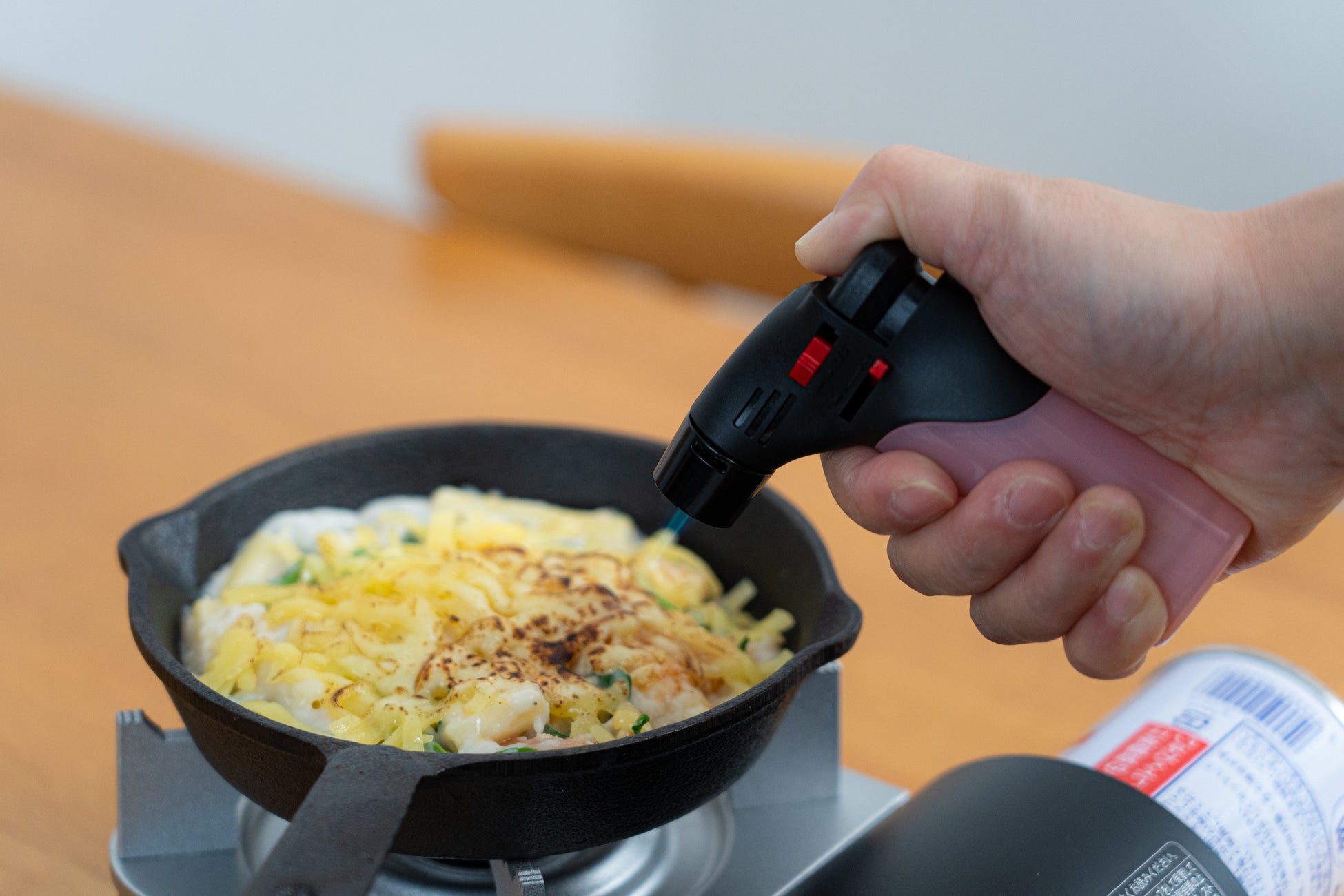 「あぶり師」は、安全キャップ付きのキッチントーチ型の使いきりバーナーライターです。発売から約3年半で累計出荷本数は60万個を突破(26年3月17日時点)し、コンパクトで持ち運びやすく、準備の手間を抑えて使用できる点が特長です。屋外でも扱いやすく、手頃な価格帯(500円台)で購入できるため、必要な場面で手軽に取り入れられるツールとして活用されています。