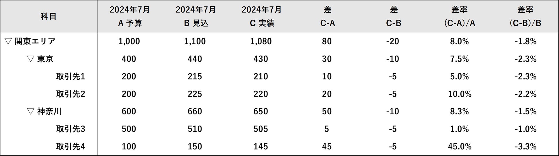 例1)取引先別の予実ギャップをドリルダウン分析したい