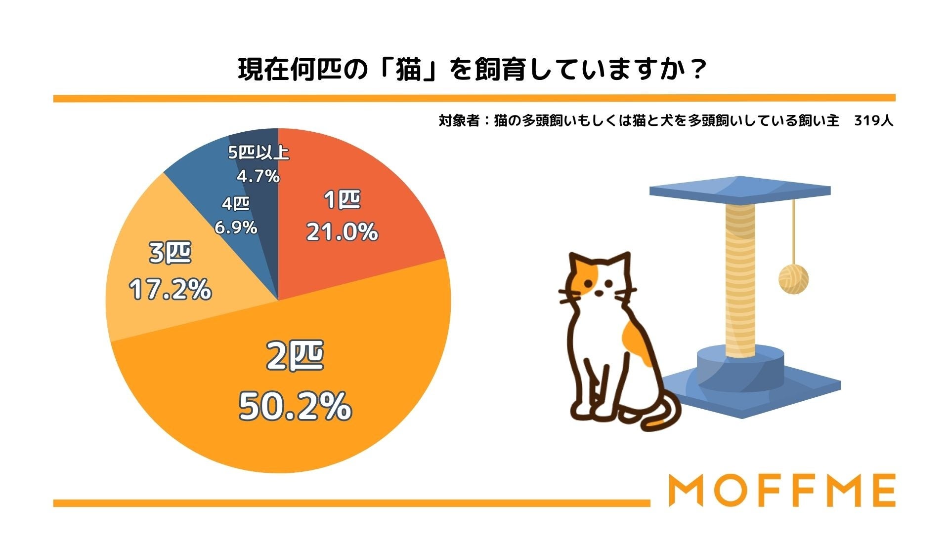 猫の飼育頭数について1位は50.2%で「2匹」という回答が最多でした。