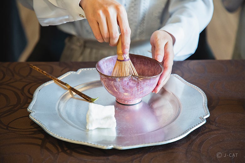 ・座学で茶教を勉強した後、お点前とお茶のいただき方を学ぶOtonami限定プラン。季節のお菓子と2服のお茶付き。