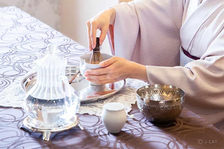 講師を務めるのは、2009年に名古屋発足して以来、国内外の様々な場所でテーブルスタイル茶道を広めている「椿の会」で活動する5名の師範(講師は回ごとに替わります)。日本の茶道文化を現代のライフスタイルに合わせてアレンジしたテーブルスタイル茶道を提案。寺社仏閣やホテル、イベントでの呈茶をはじめ、音楽家や器作家とコラボレーションするなど、それぞれの活動は多岐にわたります。椿の会では、洋の要素が感じられるお菓子や器を茶道に取り入れ、現代のライフスタイルに合った形態でお茶を点てて味わい、心安らぐひとときを過ごすことを目指しています。