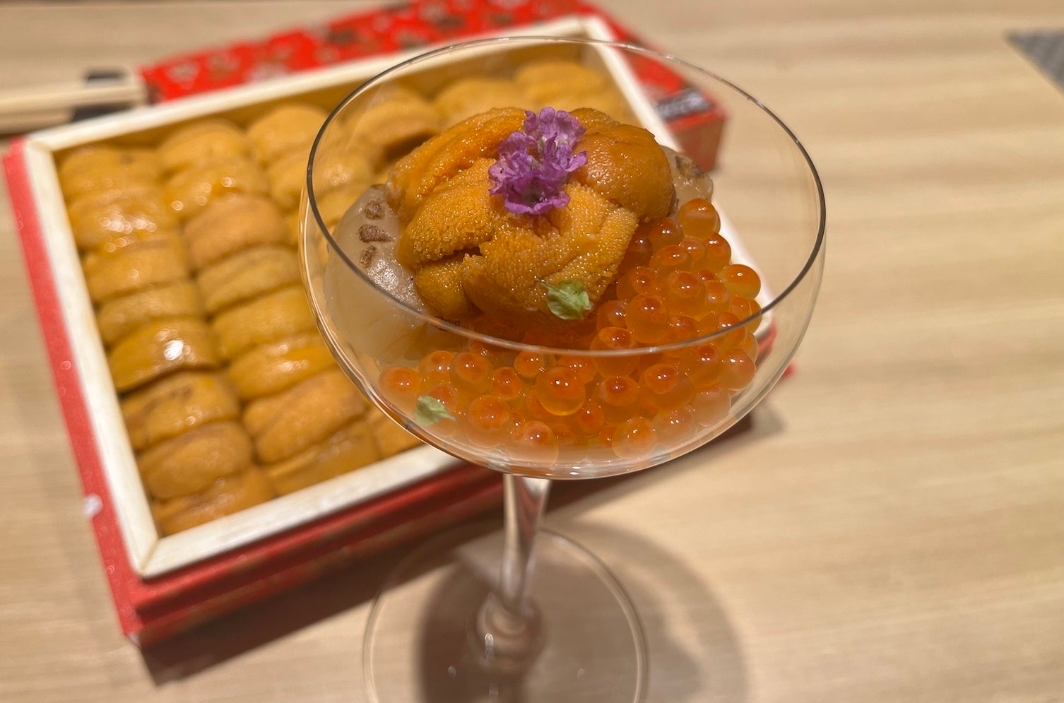 この贅沢なプランは、通常の20品のお任せコースに、6,600円の追加料金でご提供。