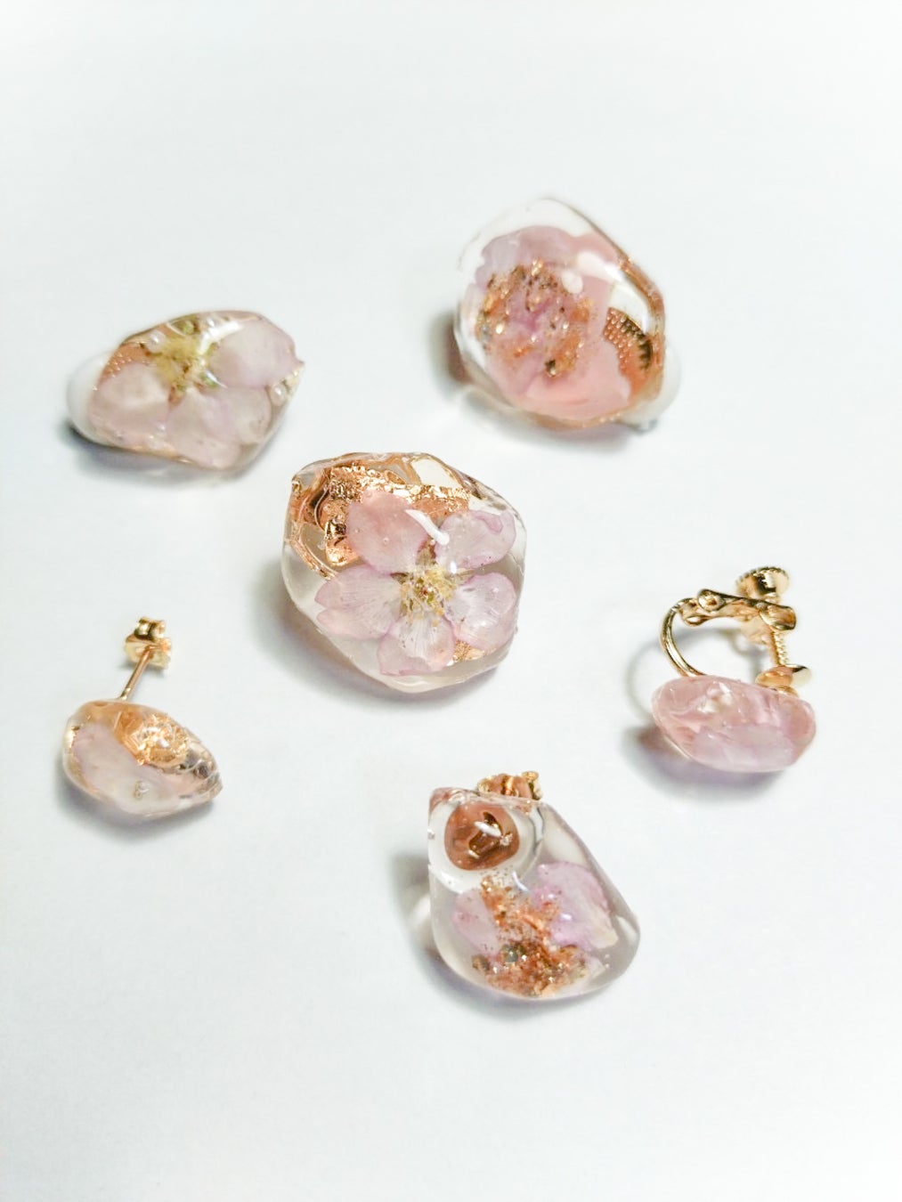 本物の桜の花びらを使用してアクセサリーを作るワーク