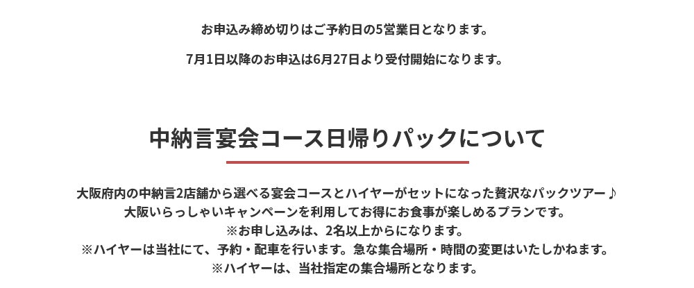 【7月14日迄延長!大阪府・京都府・兵庫県・滋賀県・和歌山・奈良県在住の方限定!】6,000円‼️さらに2,000円クーポン付 ハイヤーで行く中納言日帰りパック特集