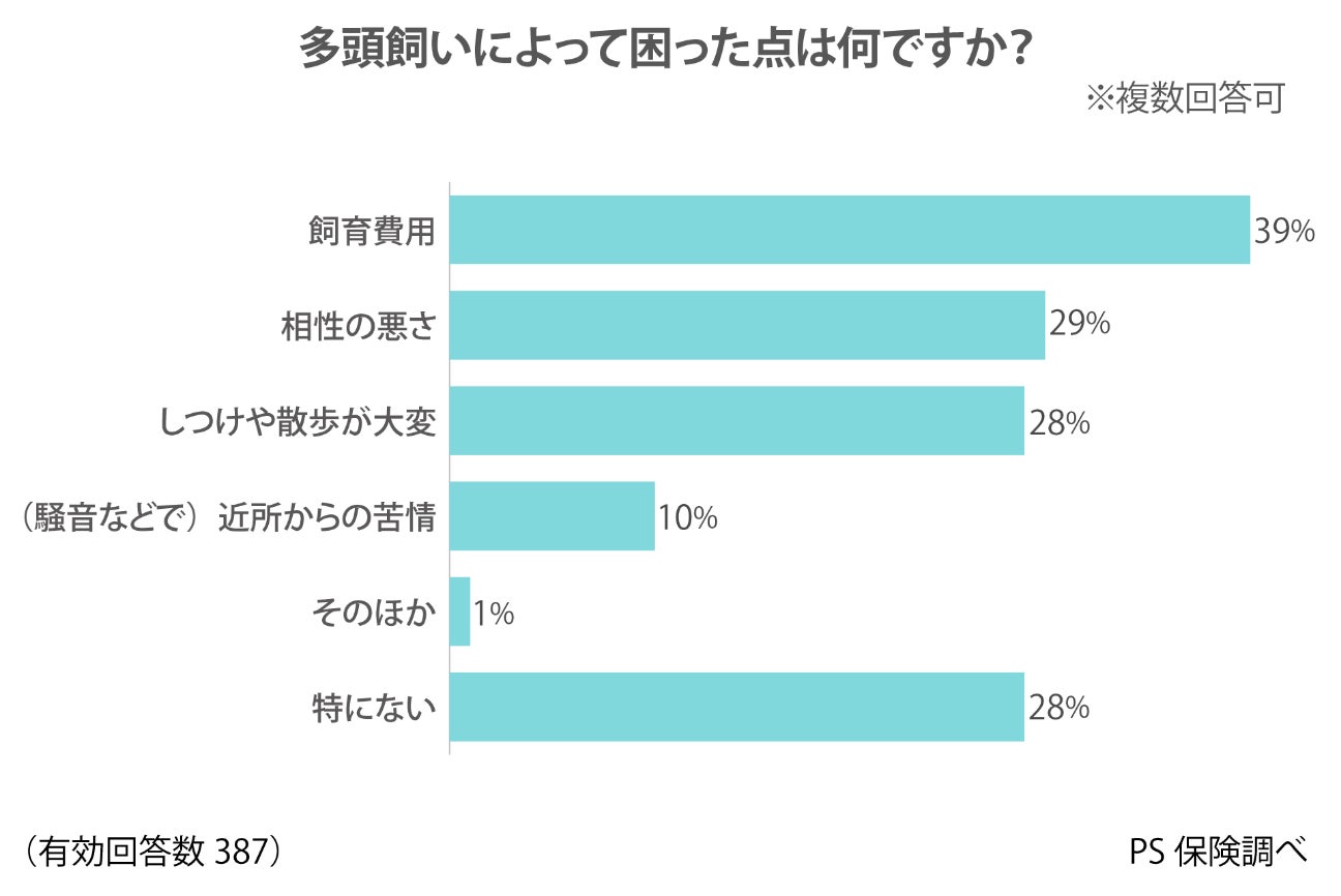 一方、多頭飼いによって困ったことは「特にない」という回答は28%でした。