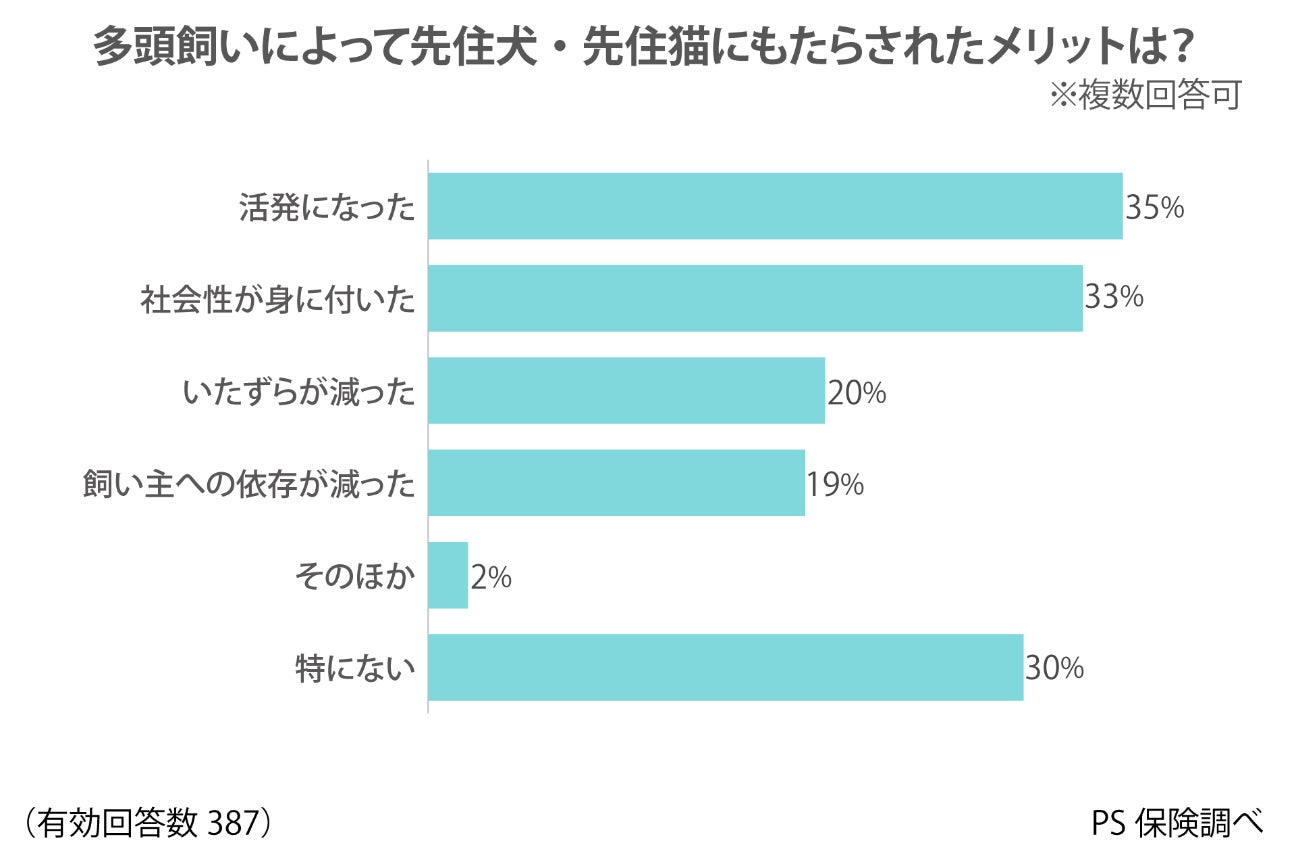 多頭飼いによる先住犬・先住猫にもたらすメリットは「活発になった」が最多(35%)。