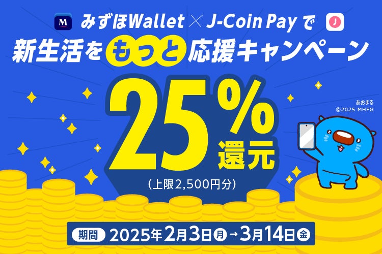 みずほWallet×J-Coin Payで新生活を”もっと”応援キャンペーン開催!決済金額の最大25%をボーナス還元
