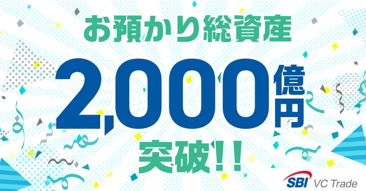 SBIホールディングス株式会社(本社:東京都港区、代表取締役会長兼社長:北尾 吉孝)の連結子会社で暗号資産交換業を営むSBI VCトレード株式会社(本社:東京都港区、代表取締役社長:近藤 智彦、以下「当社」)は、2024年11月12日時点でお客さまからのお預かり総資産が2,000億円を突破したことをお知らせします。