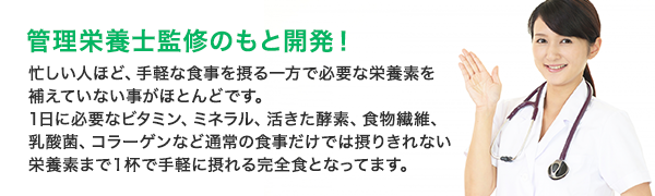 〜本商品なら一食分で、一日に必要なビタミン・ミネラルが総合的に摂取できますので、野菜不足や栄養の偏りの心配から解放されます。