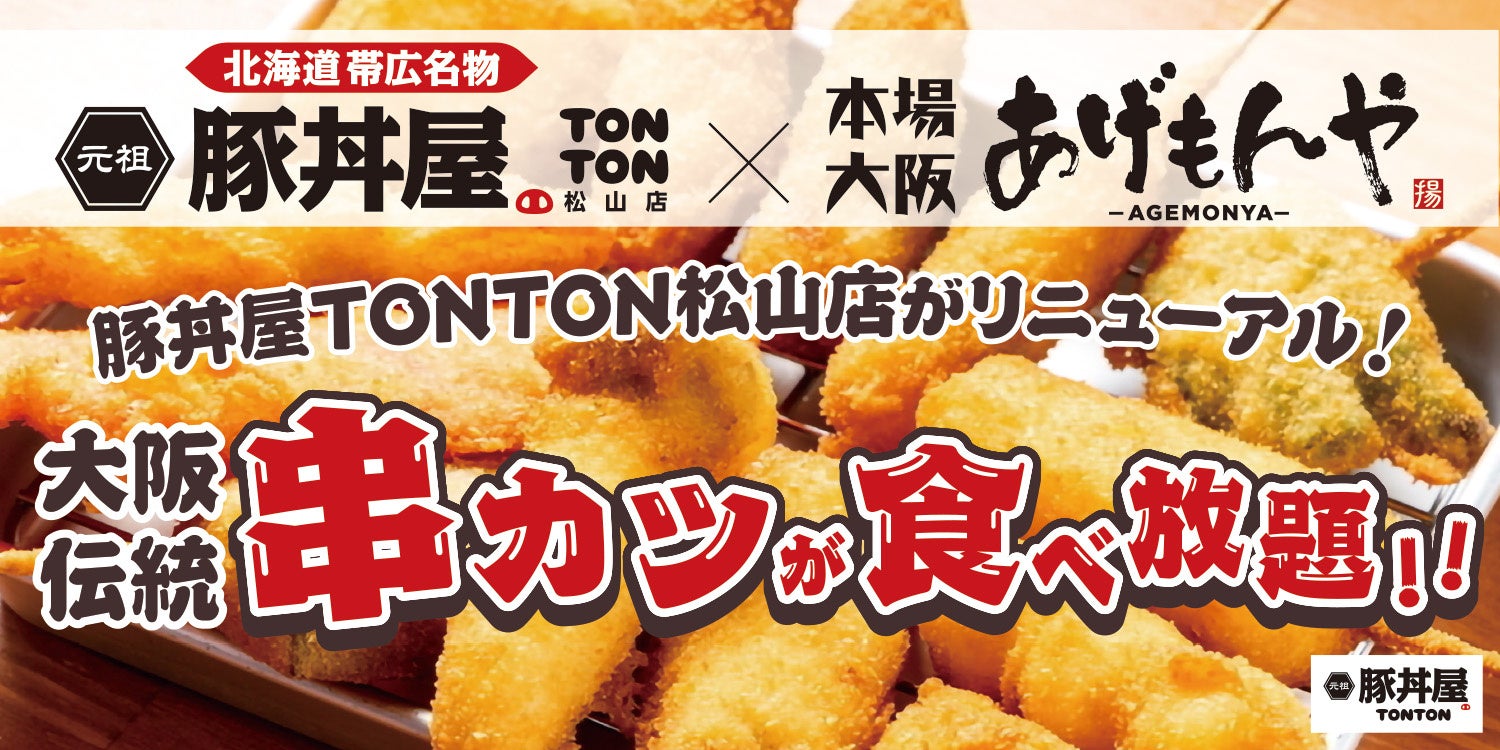 元祖豚丼屋TONTON松山店がリニューアル!パワーアップして大阪名物・串カツ食べ放題の提供開始!