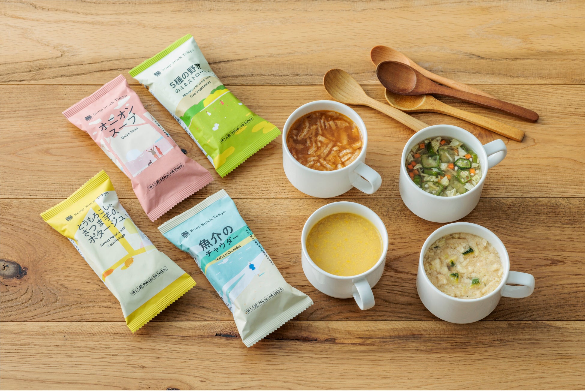 せわしなく過ぎていく毎日に、ふうっとひと息つく時間をお届けしたい。そんな想いで作ったSoup Stock Tokyoのフリーズドライは、素材本来の味や特徴、だしの旨味などを活かし、風味や香りを引き立てながら、奥行きが出るように仕上げています。具材感や食感を楽しんでいただくスープや素材の旨味をしっかりと味わえるポタージュなど、私たちがおいしいと思える一杯にこだわりました。