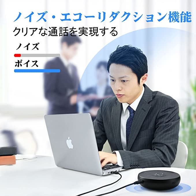 2つの高性能のマイクだけで360°全方向から声を漏れなく集め、話し手がより明確にコミュニケーションをとり、会議をより効率的に行うことができます。また、オートゲインコントロール機能も付きのため、発言者の声を自動的に検知し、ある程度に音量を増幅し、発言内容がより明確的に伝えます。