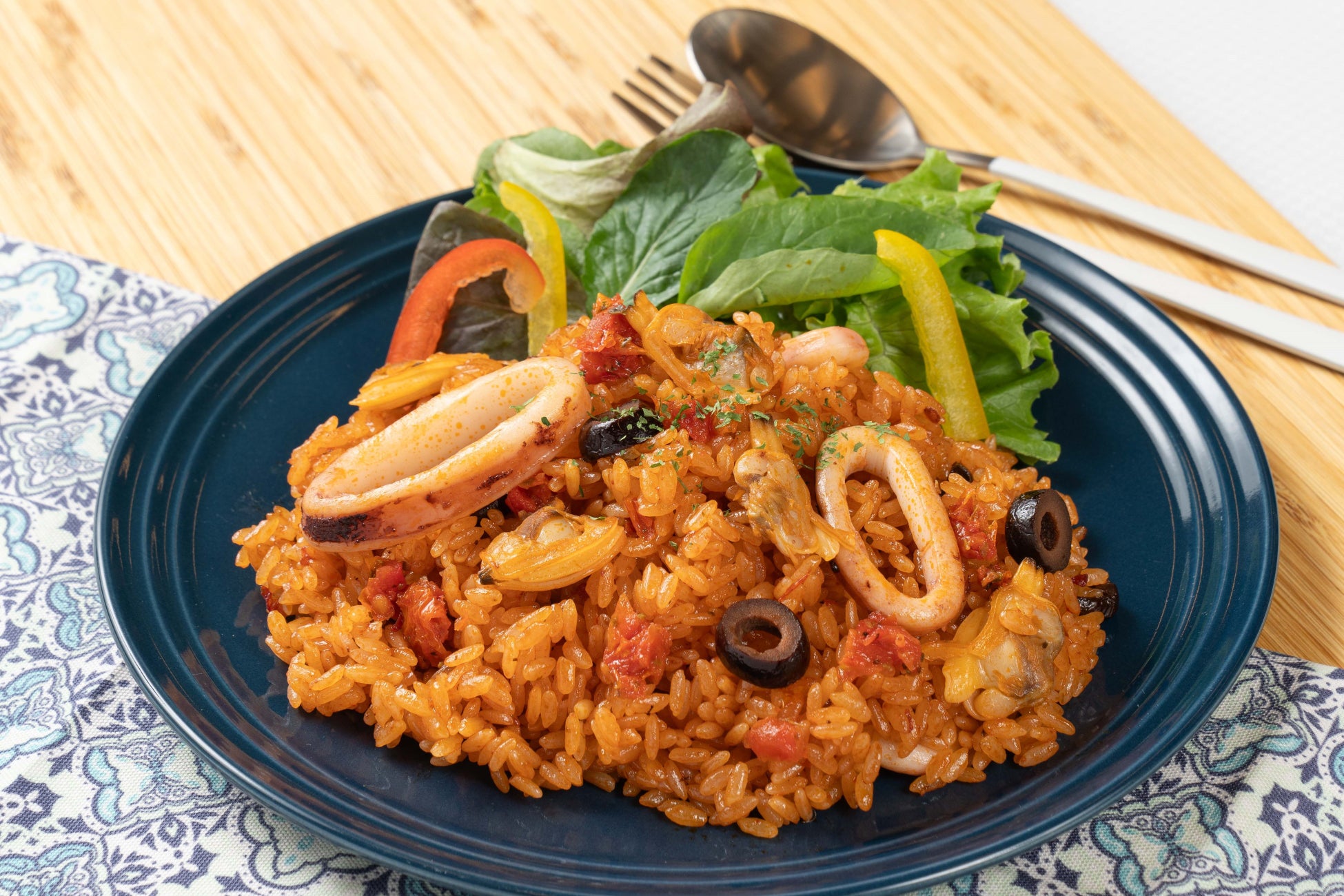 「地中海風 完熟トマトおこわ」は、もち米を完熟トマトスープで炊き上げ、トマトの旨みを一粒一粒に閉じ込めた、たごさくオリジナルの逸品。イカ・あさりの魚介類とブラックオリーブがアクセントとなり、夏でも食べやすい、爽やかな味わいの洋風おこわです。パエリアに似ているようで違う!弾力のある“もちもち”食感と、口の中で“パラっと”ほぐれる2つの食感が楽しめます。