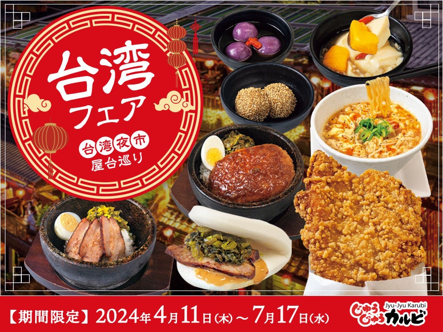 【食べ放題】気分は台湾屋台巡り!屋台料理やスイーツを楽しめる「台湾フェア」を焼肉じゅうじゅうカルビで開催