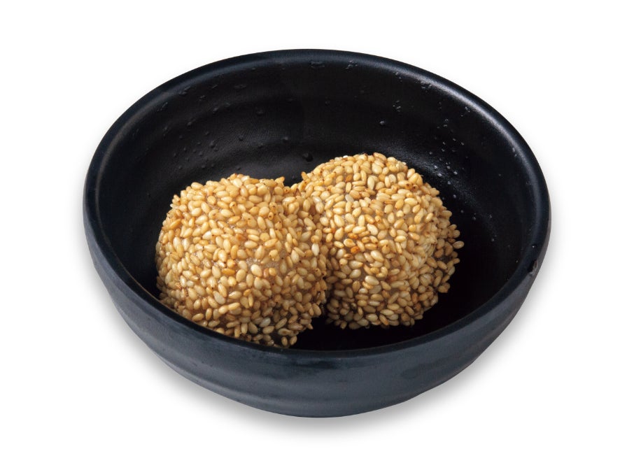 揚げたての胡麻が香ばしい、もっちり食感の熱々のお団子です。