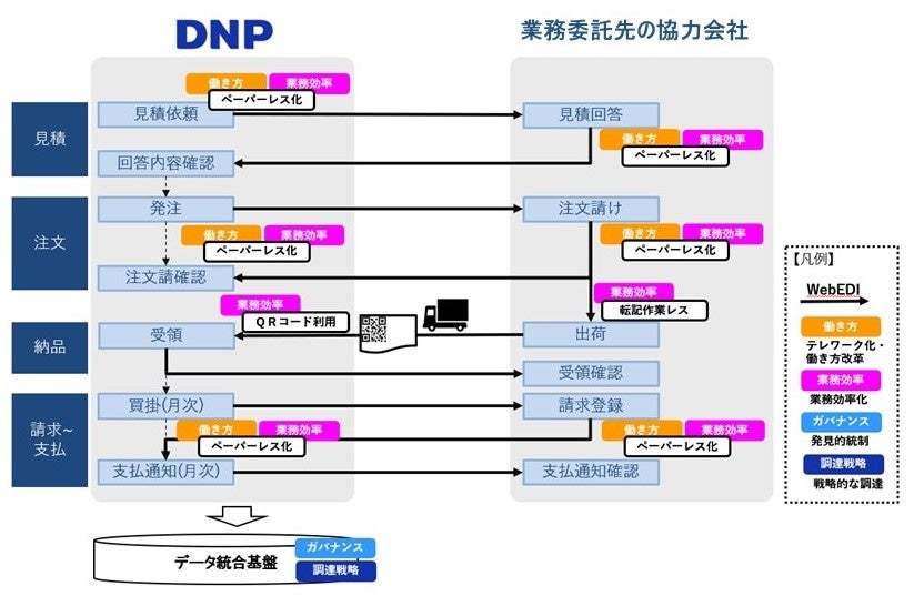 大日本印刷株式会社(本社:東京 代表取締役社長:北島義斉 資本金:1,144億円 以下:DNP)は、業務委託先の協力会社に対する見積依頼から発注、納品物の受領、支払通知等に至る全ての取引のプロセスをデジタル化するため、OpenText社の「WebEDIシステム」*を導入します。