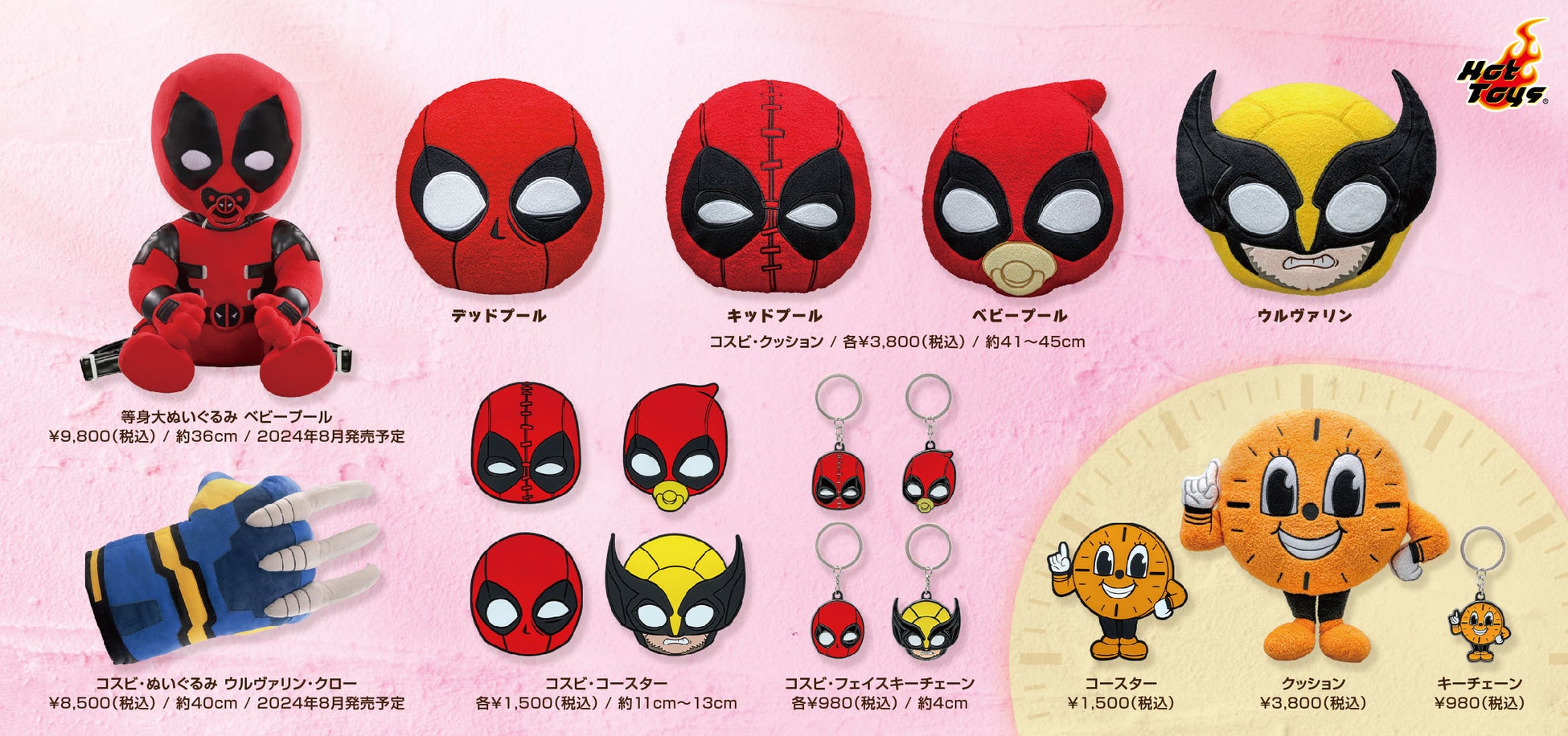 さらに、8月下旬に店頭とオンラインで同時発売するイベントの追加アイテムとして、ベビープールの等身大ぬいぐるみと、ウルヴァリン・クローのコスビ・ぬいぐるみも登場!ベビープールの等身大ぬいぐるみは、高さ約38cm、背中には調節できるベルトが付いているので、ベビープールを抱っこやおんぶするかのように身に着けることができます。デフォルメフィギュア「コスビ」シリーズのデザインをモチーフに、ウルヴァリンの右手をぬいぐるみ化したウルヴァリン・クローは、高さ約40cmで、実際に手を入れて装着することが可能です。