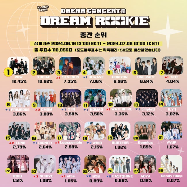 計28の新人グループが参加している「ドリームルーキー 1stファン投票」は候補に上がった新人グループの参加も活発で、K-POP SEOULの公式SNSであるX(旧Twitter)に持続的な投票督励映像がアップデートされており、台湾ではK-MONSTAR、日本ではmahocast、WowKOREAとの提携を通じて該当国家でも共にプロモーションが進行しており、海外ユーザーの参加が活発に行われている。