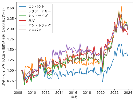 ➀全ボディタイプを総合した「中古車市場価格指数」