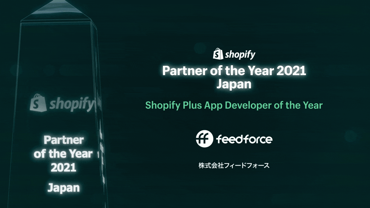 2021年11月4日、Shopify Japan株式会社が主催するCOMMERCE DAY2021の中で開催されたShopify Partner of the Year 2021 – Japan表彰式にて、App Unity主催企業の株式会社フィードフォースと、株式会社ハックルベリーが、表彰されました。