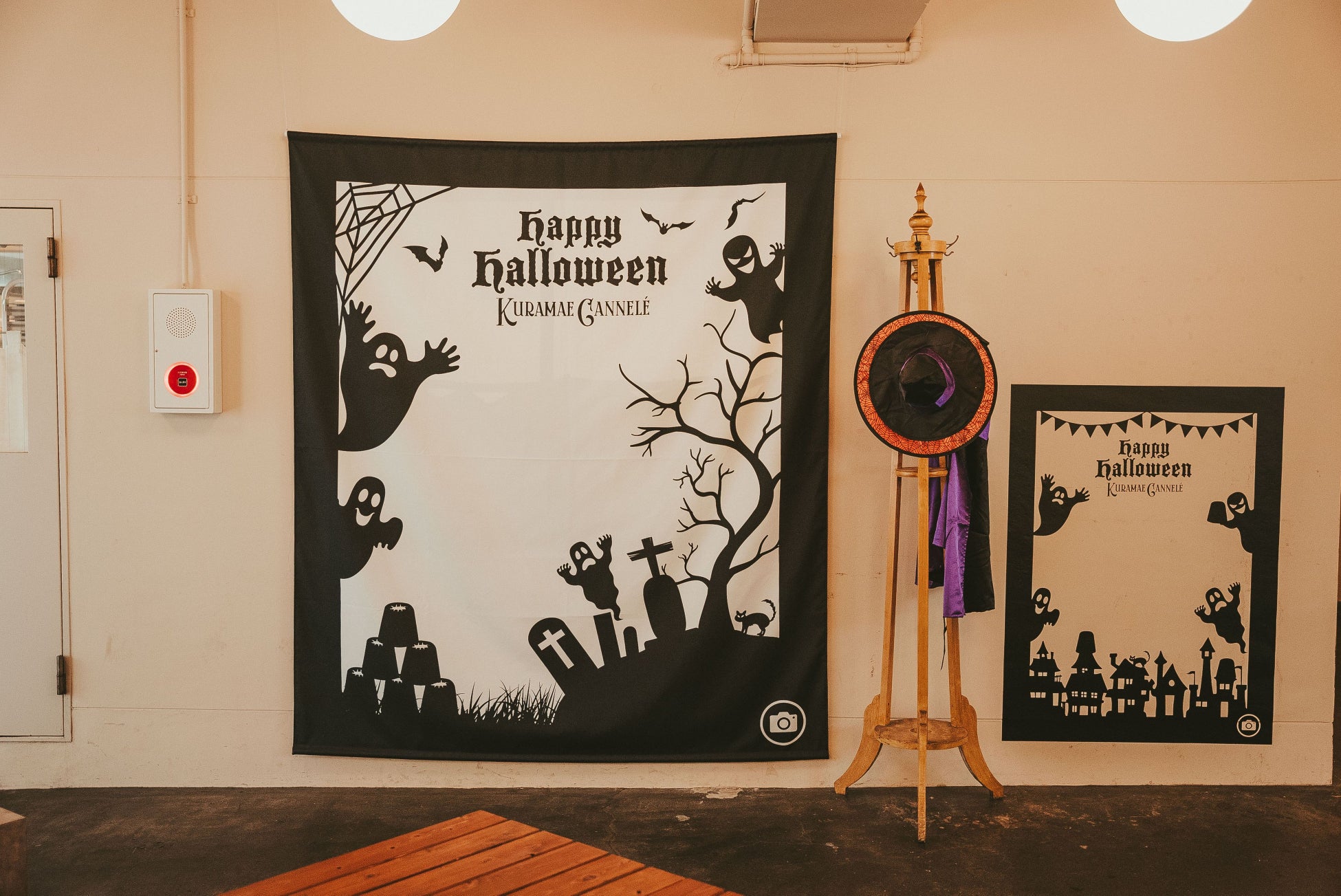 ハロウィンらしい装飾になったイートインスペースでは、お子様やペットと一緒に撮影もできるフォトスポットもご用意しました。ちょっと怖くてかわいらしいKURAMAE CANNELÉのハロウィンをお楽しみください。