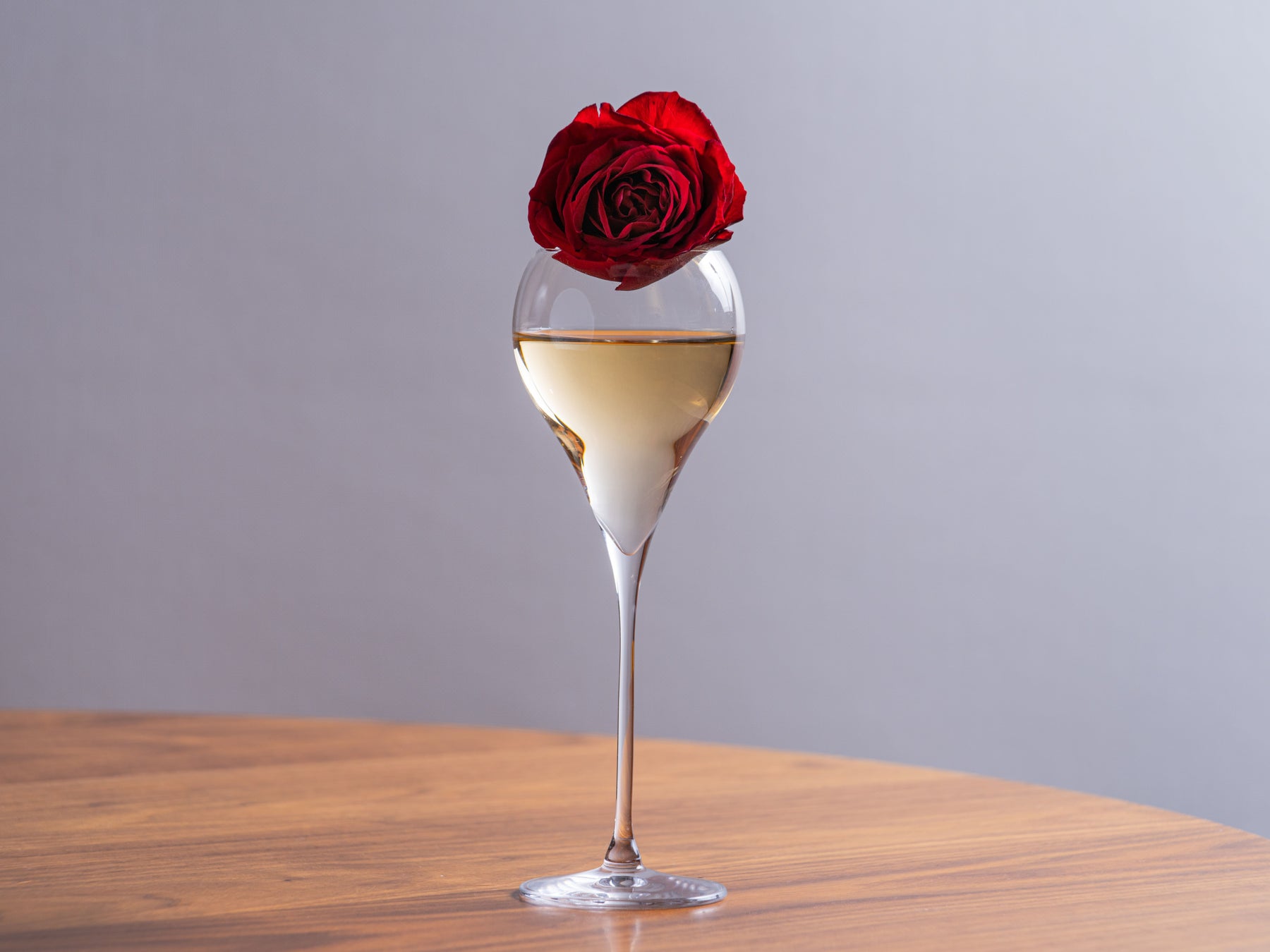千鳥柄がアクセントに使われたアフタヌーンティーは、クラシカルなムード漂うレッドのローズやバーガンディを添えて大人な雰囲気に。