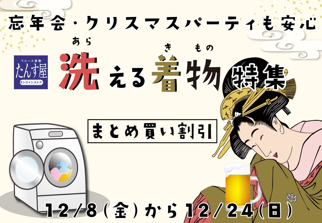 リユース着物「たんす屋オンラインストア」では12月8日(金)~12月24日(日)の期間「洗える着物特集」を開催中です。