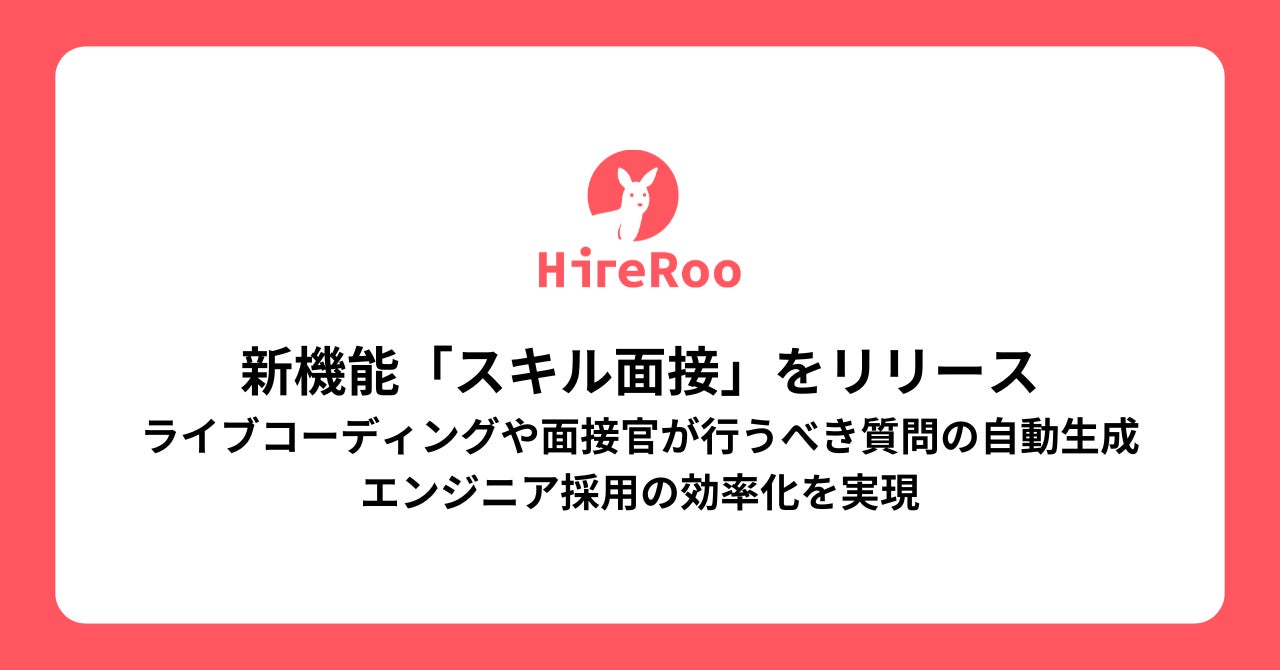 エンジニア組織向けプラットフォームを提供する株式会社ハイヤールー(本社:東京都渋谷区、代表取締役:葛岡宏祐)が提供するAI時代のスキル面接サービス『HireRoo(ハイヤールー)』( https://hireroo.io )は、新機能として「スキル面接」をリリースしました。この機能を通じて、面接中のライブコーディングの実施や、面接官の行うべき質問の自動生成を通じ、評価が難しいとされるエンジニアのスキル評価を支援します。