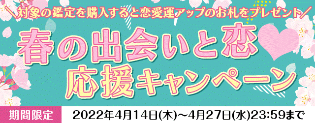 この度、月額公式サイト『水晶玉子 陰陽艶花占』にて『春の出会いと恋応援キャンペーン』を公開いたします。対象の鑑定をご購入の皆様に恋愛運アップのお札をプレゼントいたします。この機会をどうぞお見逃しなく!