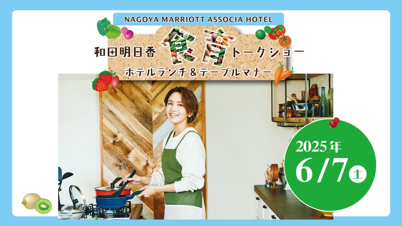 名古屋マリオットアソシアホテル(名古屋市中村区・総支配人 大本茂)では、2025年6月7日(土)に宴会場「タワーズボールルーム」にて「和田明日香 食育トークショー ホテルランチ&テーブルマナー」を開催します。